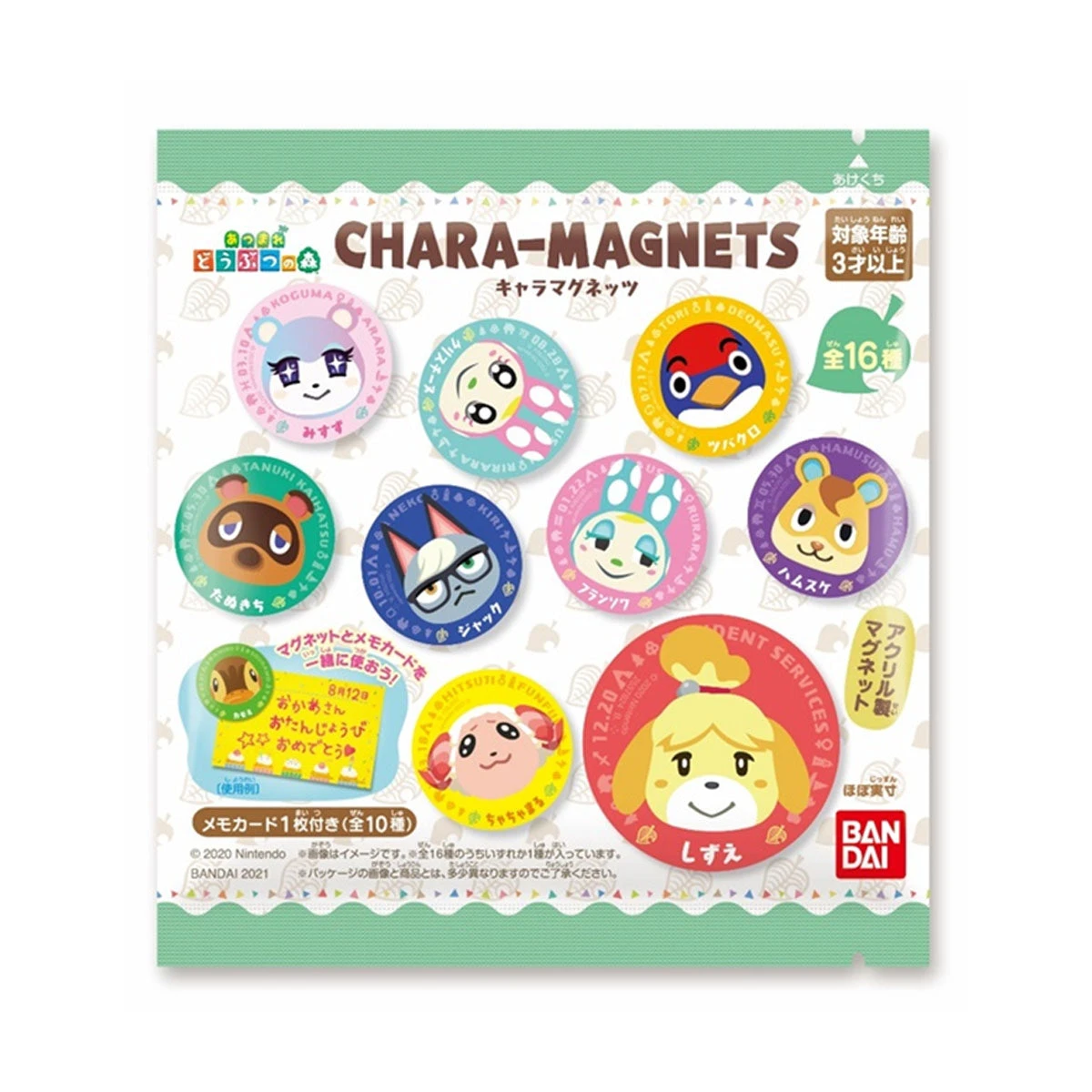 Collection de magnets Animal Crossing ! Un magnet, une carte mémo et un chewing gum inclus dans chaque paquet ! 16 designs de magnets et 10 designs de mémos différents possibles, au hasard !