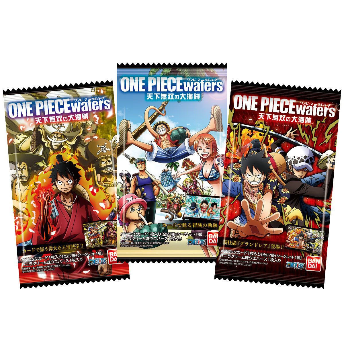 Dans chaque paquet de ces gaufrettes, retrouvez une carte spéciale One Piece parmis 27 designs différents + 1 secrète !