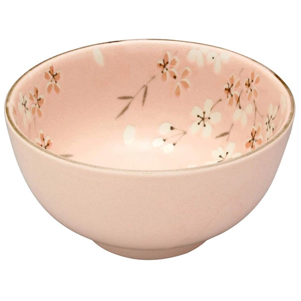 Un grand bol à riz Kakuni rose, aux motifs de fleurs de cerisier.
