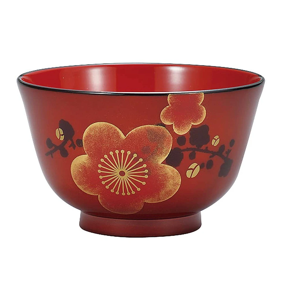 Jolie bol à soupe miso rouge aux motifs de fleurs de pruniers (ume).