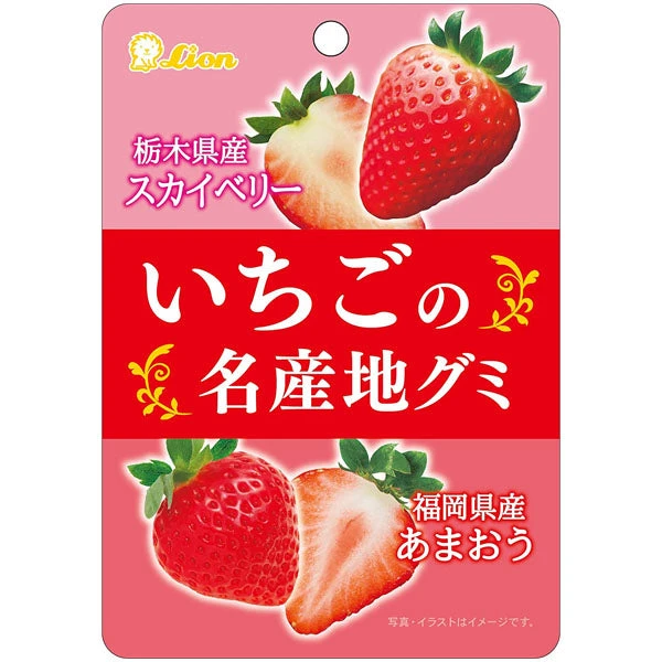 Avec ces bonbons, vous pouvez profiter de 2 types de fraises japonaises populaires ! Les bonbons roses représentent les Skyberry de Tochigi, au goût sucré et un peu acide, et les rouges les fraises de Amaou (à Fukuoka) avec un goût très doux.