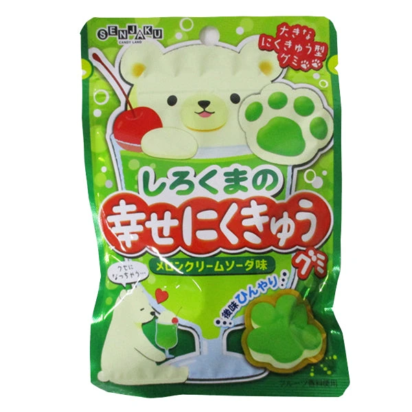 Les bonbons trop mignons Happy Nikukyu sont en formes de pattes d’animaux ! Cette version ours blanc est au gout Melon Cream Soda : une limonade au melon avec une boule de glace vanille !