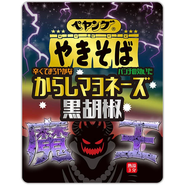 Les classiques Yakisoba Peyoung dans une version avec une mayonnaise riche en moutarde et du poivre noir ! Un combo délicieusement démoniaque !