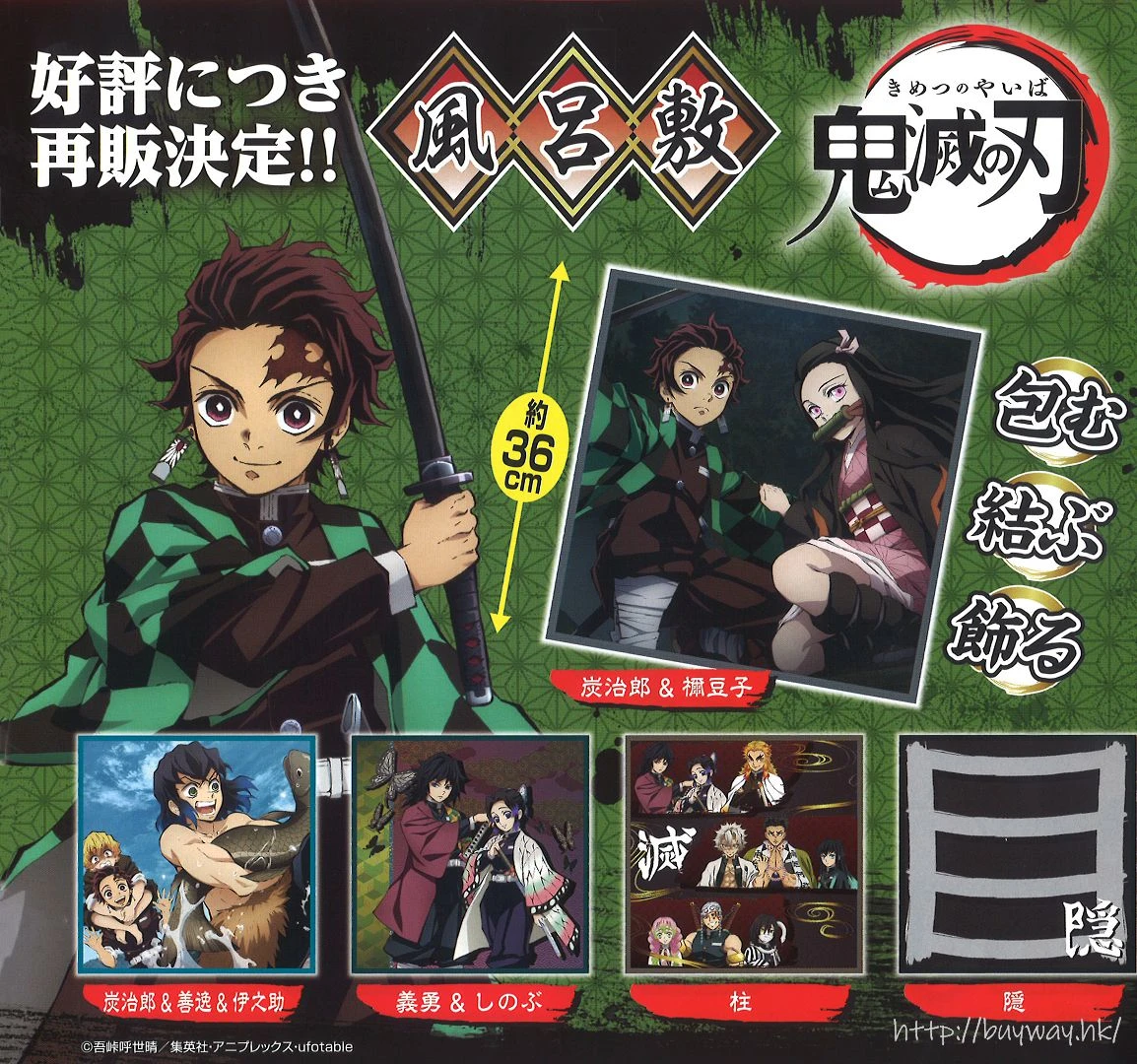 Pour changer des classiques figurines, voici une collection de furoshiki tirée de l’anime. Cinq designs différents possibles!
