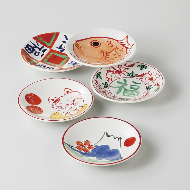 Lot de 5 magnifiques coupelles ! Chacune d’entre elles arbore le design d’un élément de la culture japonaise évoquant la chance !