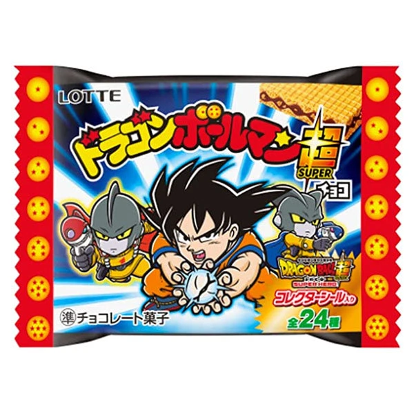 Ces délicieuses gaufrettes par Lotte sont fourrées au chocolat renferment un superbe sticker Dragon Ball !