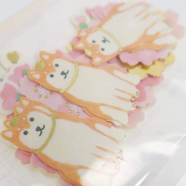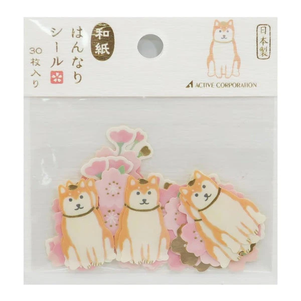 Un set de stickers en washi, le papier traditionnel japonais. Plusieurs motifs, notamment des Shiba Inu ou des fleurs de cerisier.