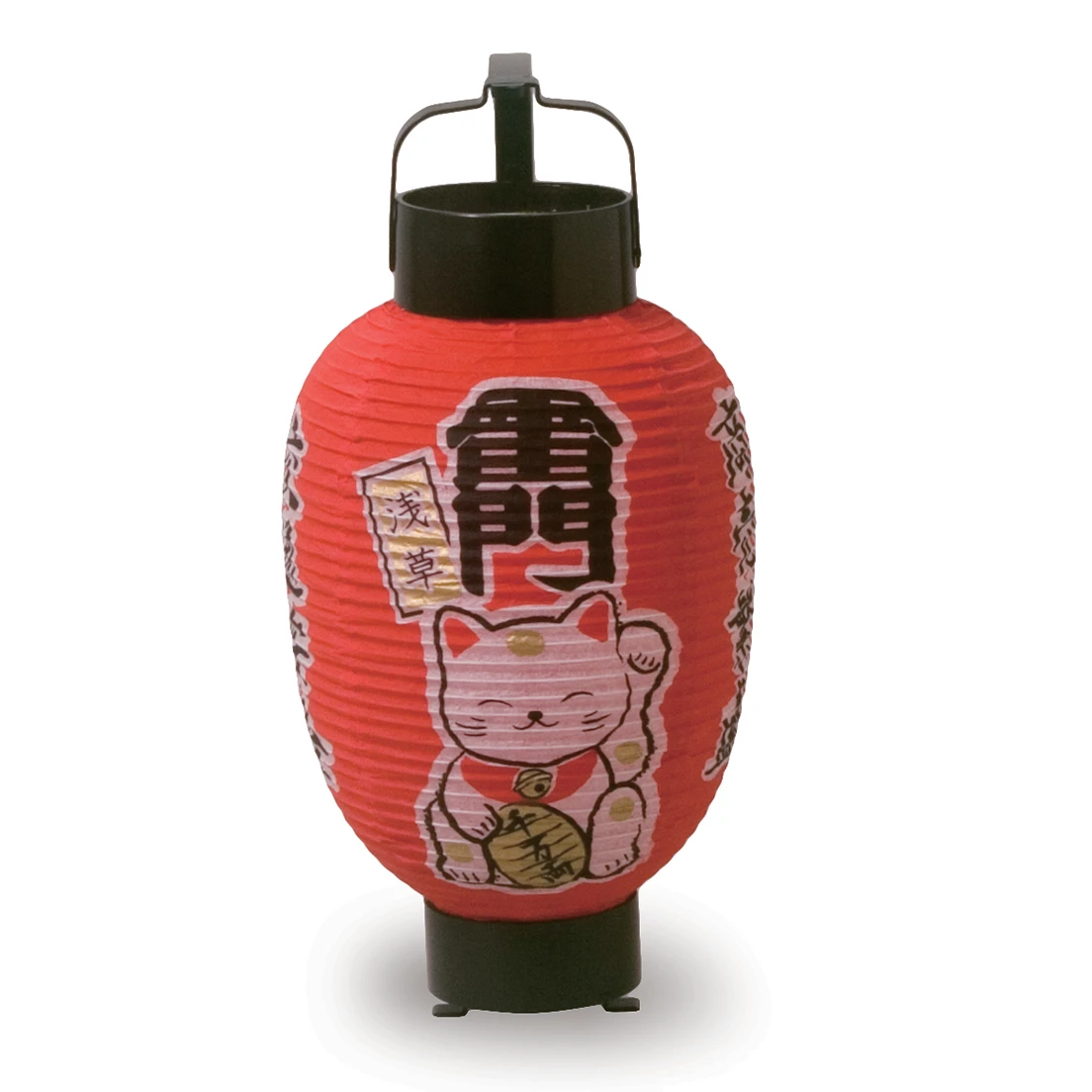 Jolie petite lanterne décorative japonaise de 12cm. Le design represente un petit Maneki-neko, fameux chat japonais porte bonheur.