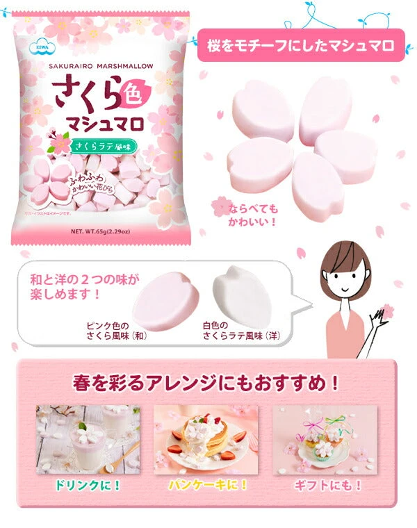 Ces chamallow sont sortis pour la saison des sakura ! Chacun d’entre eux a la forme d’un pétales de sakura blanc ou rose. Ceux de couleur rose sont saveur sakura et les blancs saveur sakura latte ! Un pur délice !