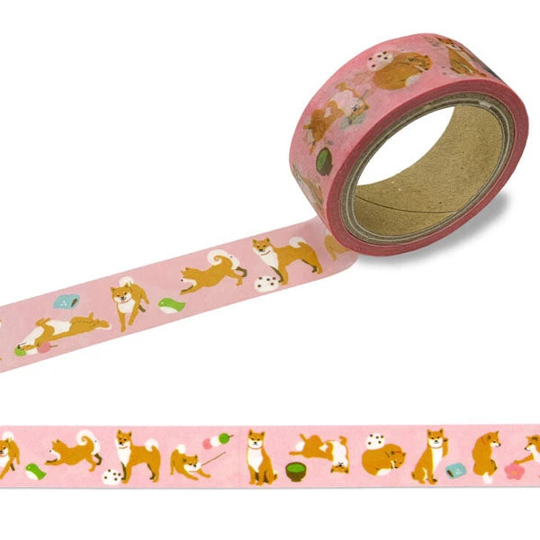 Un rouleau de washi tape, le masking tape en papier traditionnel japonais. Ce rouleau met à l’honneur Shibata San le Shiba Inu !