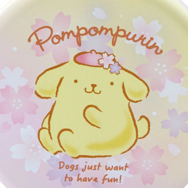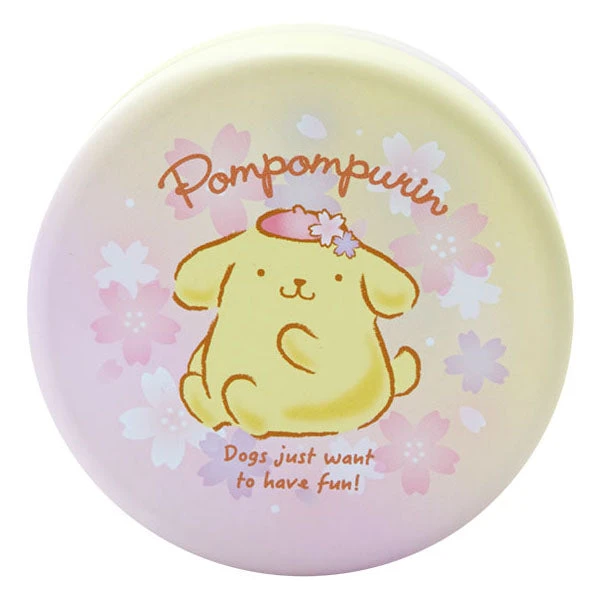 Une belle boite en métal Sanrio Pompompurin aux couleurs des fleurs de cerisiers ! Inclus 4 bonbons à la pèche !