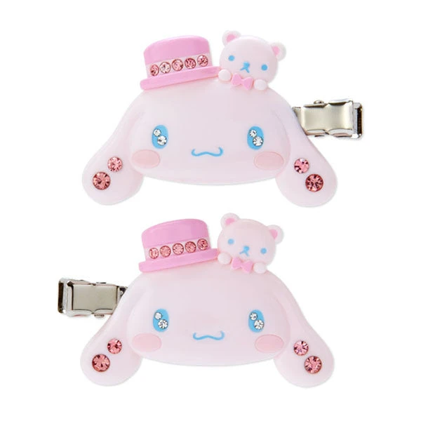 Un set de deux barrettes Sanrio Cinnamoroll en résine aux couleurs des fleurs de cerisiers avec incrustations de strass brillants !