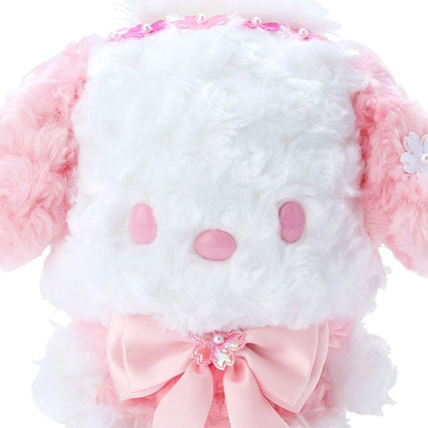 Une belle peluche Sanrio Pochacco habillée aux couleurs des fleurs de cerisiers !