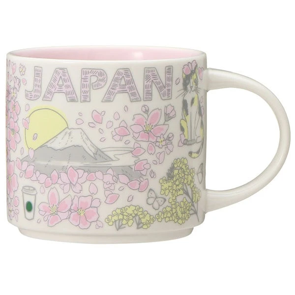 Plusieurs motifs Japonais à retrouver sur le mug et notamment : Mont Fuji, Taiyaki, Rikishi, Fleurs de cerisiers, Daruma… et bien plus encore.