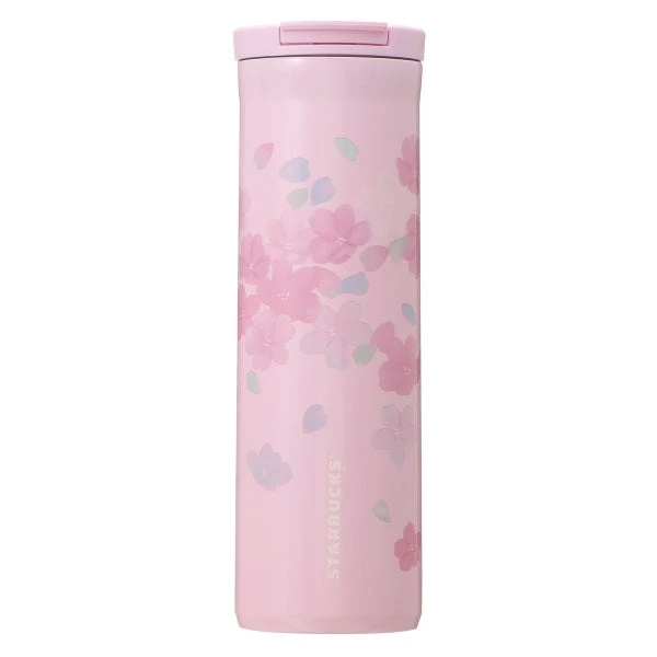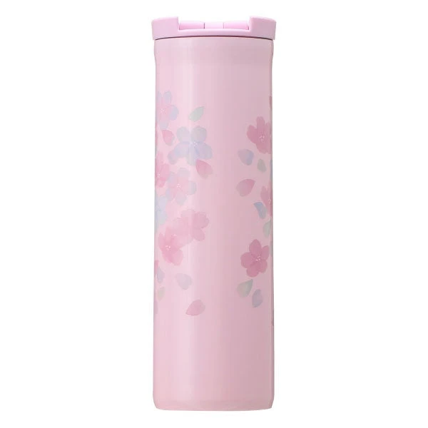 Une belle bouteille rose décorée avec une superbe envolée de fleurs de cerisiers !