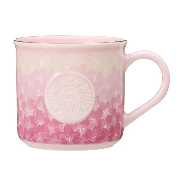 Superbe mug en porcelaine, avec le logo Starbucks sirène, un motif dégradé de fleurs de cerisiers et des détails dorés !
