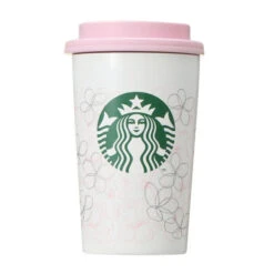 Tumbler en acier inoxydable blanc aux délicats motifs fleurs de cerisiers!