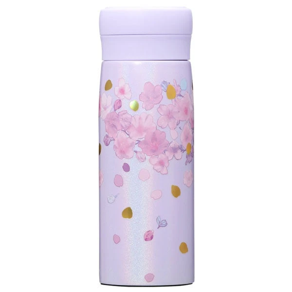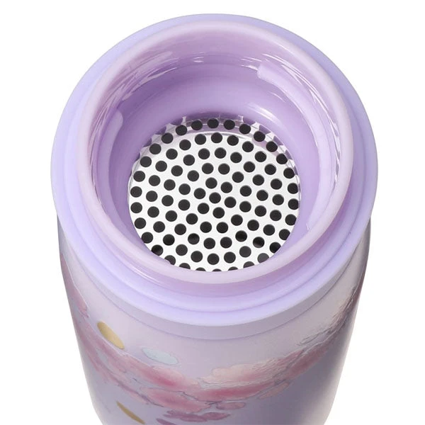 Une belle bouteille violette en acier inoxydable décorée avec des fleurs de cerisiers aux couleurs pastel. Grace à l’insert en inox dans le goulot, vous pouvez y déposer un sachet de thé pour le faire infuser.