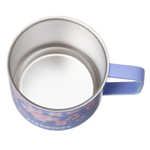 Un mug en acier inoxydable bleu avec un motif pétales de cerisiers ! Certains pétales ont un traitement holographique brillant du plus bel effet !