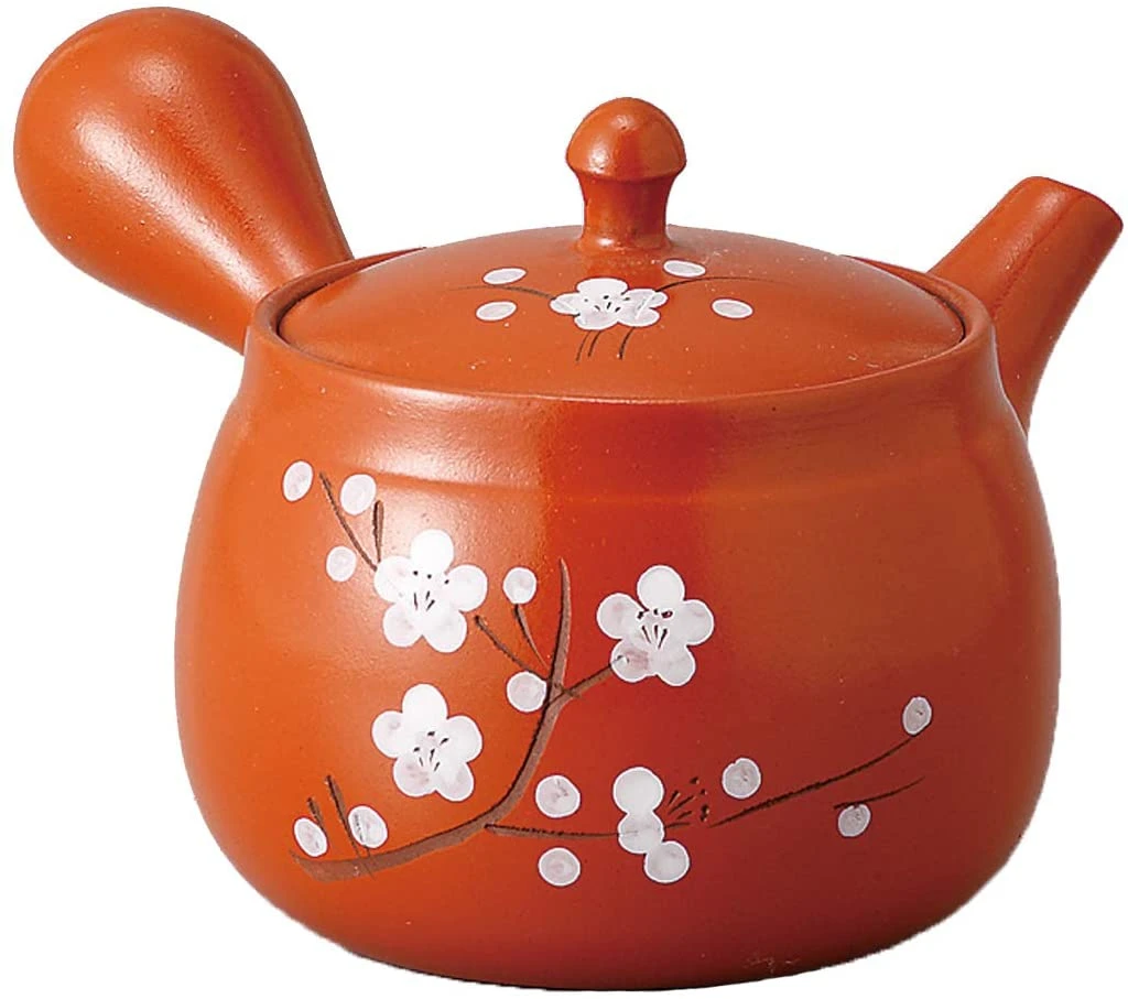 Cette théière est typiquement japonaise, avec sa poignée ergonomique sur le côté et ses jolis motifs de prunier !