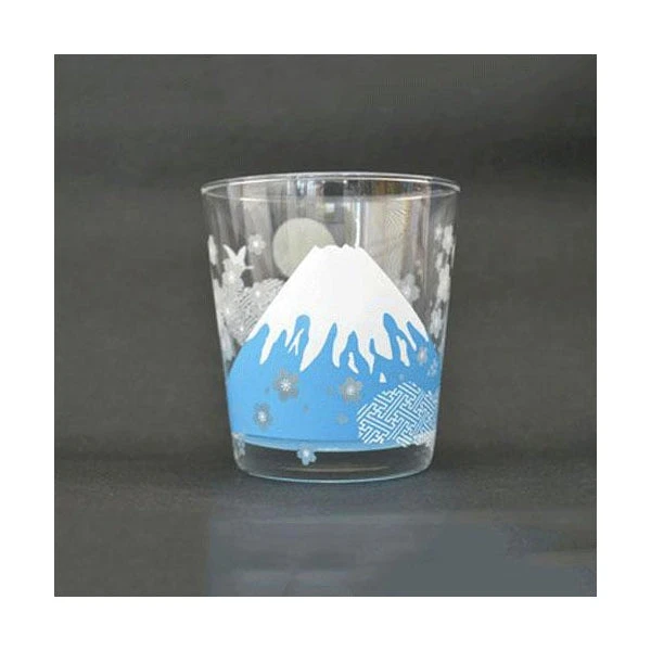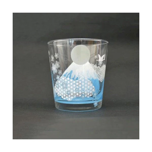 Ce verre Kakuni arbore un superbe paysage du célèbre Mont Fuji ! Les motifs fleurs de cerisier et le soleil sont thermoréactifs, ils changent de couleur ! Lorsque vous y versez un liquide froid (- de 17°), ils deviennent rose et rouge.